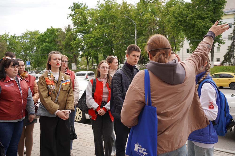 Волонтёры Победы НИУ «БелГУ» и активисты Центра гражданско-патриотического воспитания, приняли участие в пешеходной экскурсии, которую провела Министр по делам молодёжи Белгородской области Татьяна Киреева.
