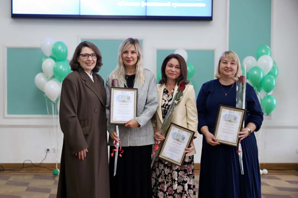 Затем в актовом зале корпуса на улице Преображенской состоялась церемония награждения победителей конкурсов профессионального мастерства и лауреатов премий Н.Н. Страхова и А.В. Погорелова.