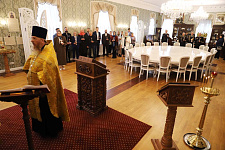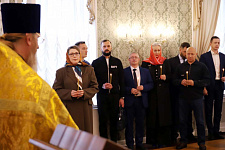 Перед церемонией награждения в храме-часовне Священномученицы Евгении Римской состоялся праздничный молебен, в котором приняли участие ректор вуза Евгения Карловская, представители ректората НИУ «БелГУ», руководители институтов и факультетов, студенты, сотрудники и преподаватели. С торжественным днём всех присутствующих поздравил настоятель храма протоиерей отец Роман (Пивнев).
