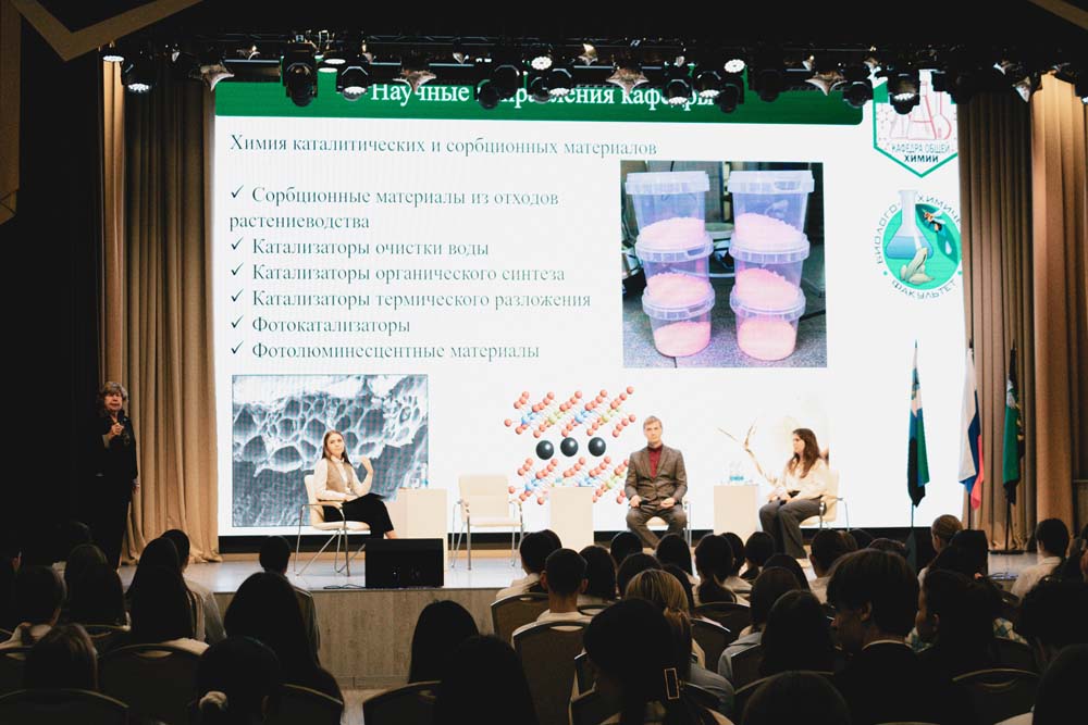 Спикерами дискуссионной площадки выступили доцент кафедры общей химии НИУ «БелГУ», к. хим. н. Людмила Дейнека, представитель индустриального партнёра вуза – компании ООО «Ямщик» Николай Дубовик и успешная студентка-химик Екатерина Мигулина. Они обсудили современные тренды в химии, карьерные траектории и развеяли распространённые мифы о профессии.