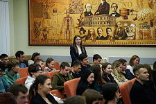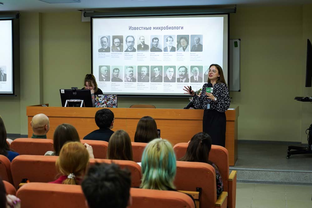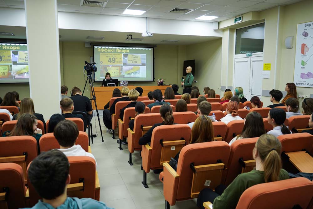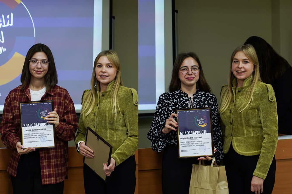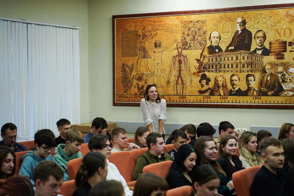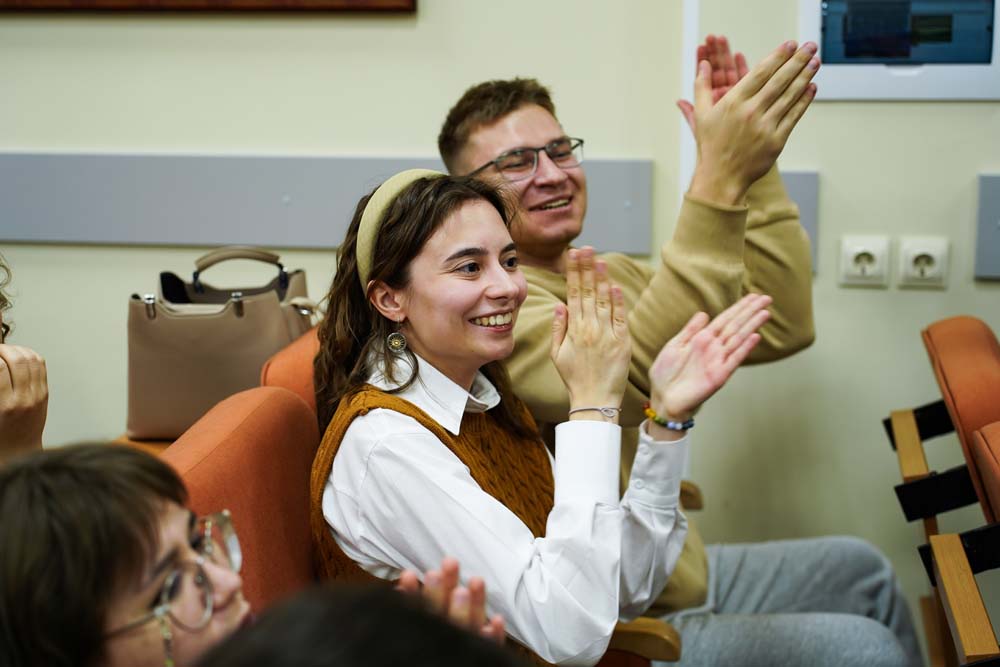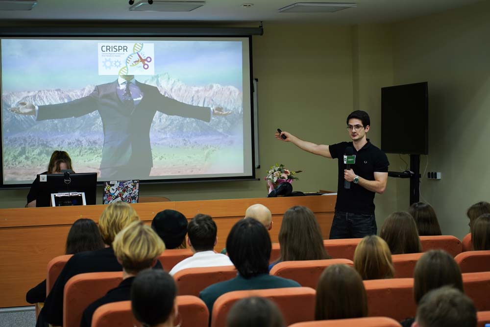 Виктория Нестеренко из юридического института проанализировала влияние санкционных ограничений на внешнеторговые процессы России в сфере энергетики и обозначила происходящие правовые изменения. Анна Чепурина из института фармации, химии и биологии объяснила, что такое секвенирование, и представила анализ кейса, известного как «дело о загадочных кустах картофеля», продемонстрировав возможности генетических методов в прикладных исследованиях. Будущий медик Сергей Осипьян представил технологию CRISPR как инструмент точного редактирования ДНК и показал её роль в лечении наследственных заболеваний, а Вероника Иванова из института межкультурной коммуникации и международных отношений рассказала о влиянии французских заимствований на современный русский язык и о том, как языковые контакты изменили структуру и смысловые оттенки речи.