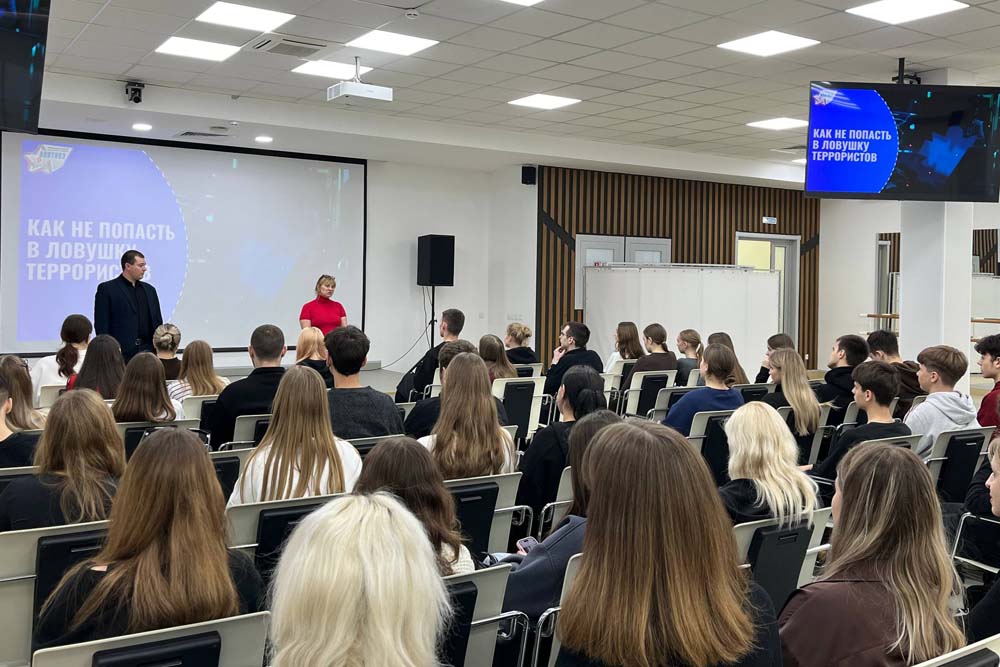 Спикер капитан полиции, оперуполномоченный Центра по противодействию экстремизму Управления МВД России по Белгородской области Павел Чёрный подробно рассказал студентам о том, какие случаи вовлечения в незаконную экстремистскую и террористическую деятельность были зафиксированы на территории Белгородской области, и какое наказание за этим последовало. Кроме того, участникам встречи напомнили о важности цифрового следа, оставляемого в Интернет. Подобные действия могут повлечь за собой не только отчисление из университета и увольнение с работы, но и административное и уголовное наказание.