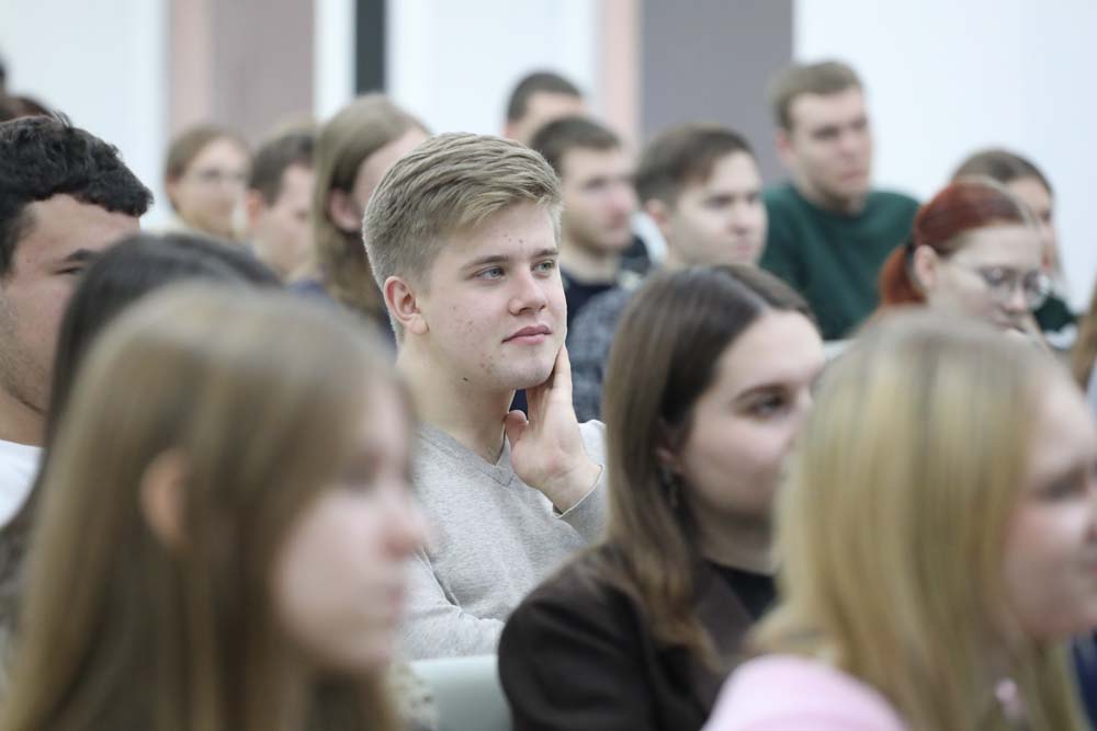 С приветственным словом к слушателям обратилась директор департамента молодёжной политики и воспитательной деятельности Елена Трофименко, отметив совместное сотрудничество с Российским обществом «Знание» на протяжении нескольких лет.