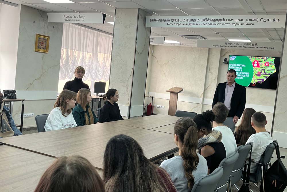 Студентов Белгородского госуниверситета познакомили с основными признаками вербовки, способами выявления опасных символов и пропагандой экстремистского характера. Участники узнали о реальной опасности, которую несут подобные группировки и получили рекомендации, как обезопасить себя от попыток вовлечения в противоправную деятельность. Отдельно поговорили о социальных сетях и интернете, ведь именно там часто распространяются опасные идеи.