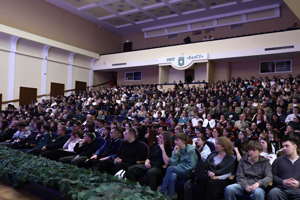 На сцене выступили творческие коллективы НИУ «БелГУ» и вузов региона, прозвучали патриотические песни.