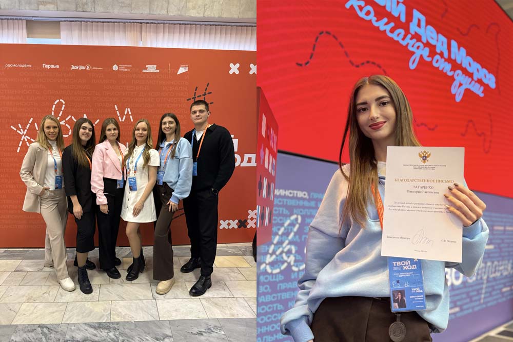 Региональная команда Белгородской области вошла в топ-30 трека «Вдохновляю». На форуме её представили студенты педагогического института Ольга Гордей и Полина Семёнова из института общественных наук и массовых коммуникаций, выпускница института экономики и управления Евгения Харченко, обучающийся медицинского института Павел Притулин и региональный координатор проекта «Твой Ход» – студентка мединститута Виктория Татаренко, которая получила Благодарственное письмо от заместителя министра науки и высшего образования Российской Федерации Ольги Петровой за личный вклад в развитие проекта «Твой Ход».