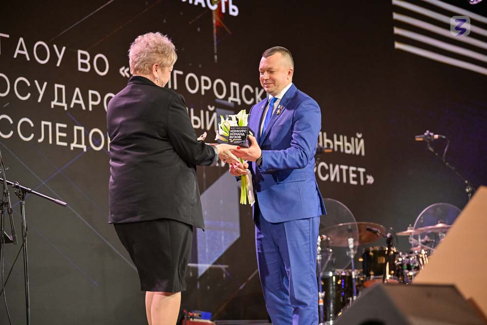 Награду команде НИУ «БелГУ» на торжественной церемонии подведения итогов проректору Елене Малышкиной вручил председатель правления «Движения Первых», Герой Российской Федерации, участник СВО Артур Орлов. Всего в конкурсе победителями стали 29 команд вузов из 20 регионов страны.
