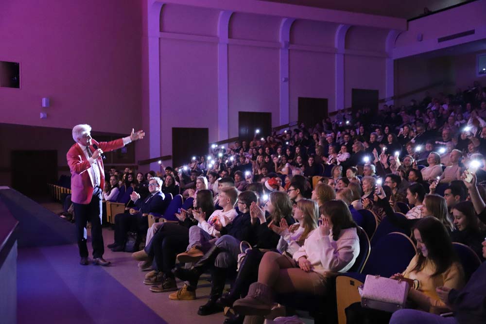 В МКЦ Белгородского госуниверситета состоялась премьера театрализованного концерта «Новый год ТВ. Прямая трансляция сквозь года». Зрителям представили яркое музыкально-сценическое шоу, объединившее атмосферу праздника различных эпох.