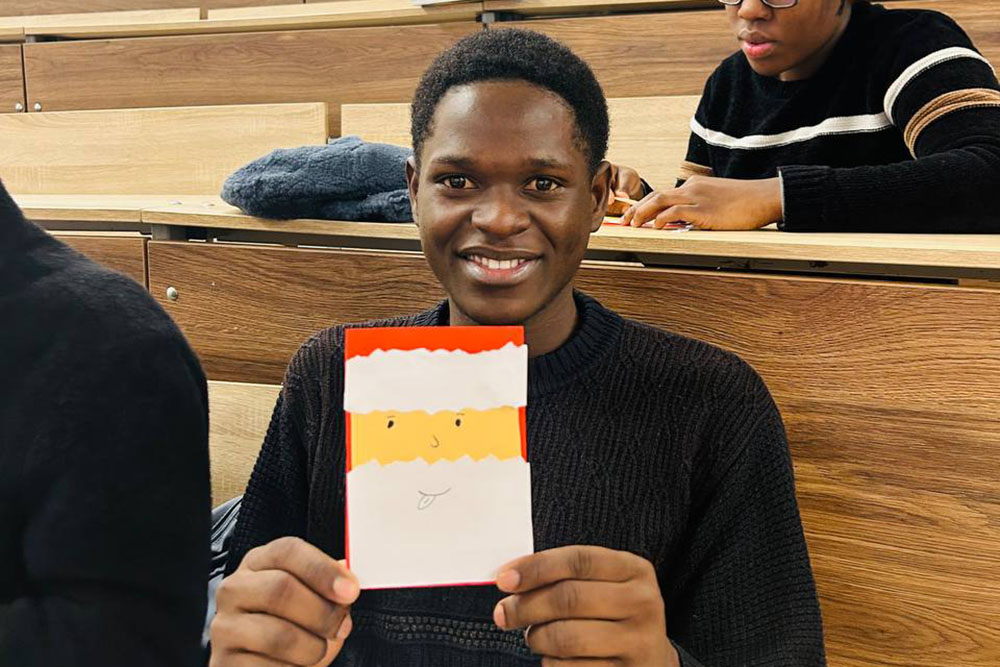 После активной части праздника наступило время для творчества. Под руководством кураторов иностранные студенты с большим энтузиазмом мастерили праздничные открытки, которые станут важным воспоминанием о первом русском Новом годе.