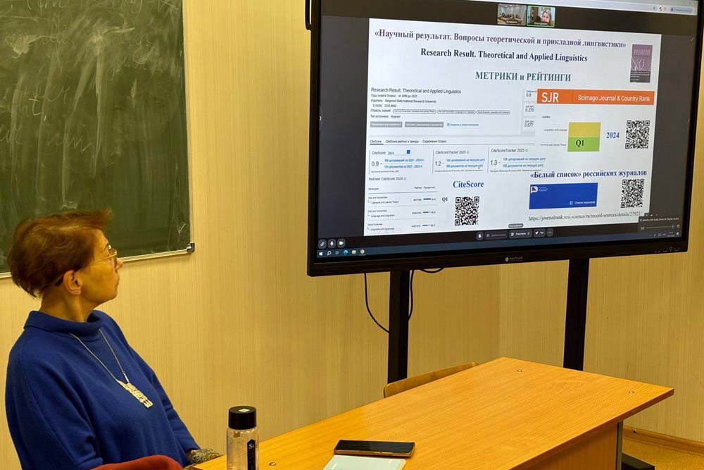 В роли спикера выступила кандидат филологических наук, доцент НИУ «БелГУ», главный редактор журнала «Научный результат. Вопросы теоретической и прикладной лингвистики» (Scopus Q1 «Белый список») Ольга Дехнич.