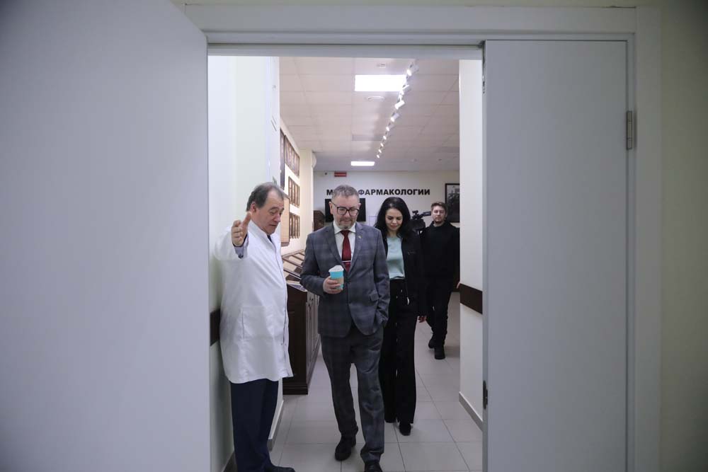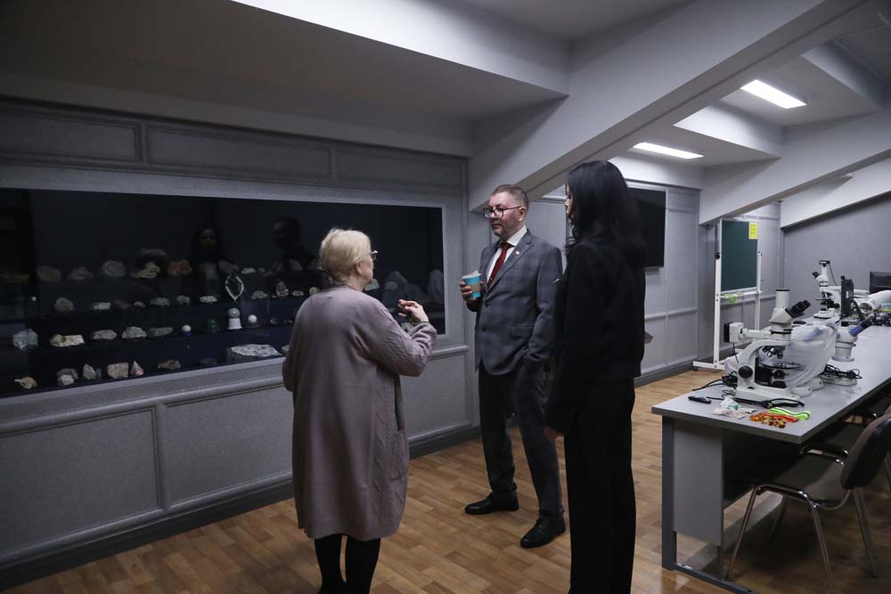 Программа визита члена-корреспондента РАН, доктора химических наук Максима Фёдорова была насыщенной. День стартовал со встречи с ректором НИУ «БелГУ» Евгенией Карловской и знакомства с историей и инфраструктурой университета. В сопровождении проректора по стратегическому развитию, науке и инновациям Елены Скрипниковой Максим Валериевич посетил Центр истории НИУ «БелГУ», музей фармакологии и геолого-минералогический музей НИУ «БелГУ», познакомился с научно-лабораторными базами кафедр информационных и робототехнических систем, математического и программного обеспечения информационных систем, информационно-телекоммуникационных систем и технологий, лабораторией МТС. Побывал Максим Фёдоров и в четырёх учебных лабораториях: электромагнитных полей и волн, электроники, основ построения инфокоммуникационных систем и сетей и волоконно-оптических систем.