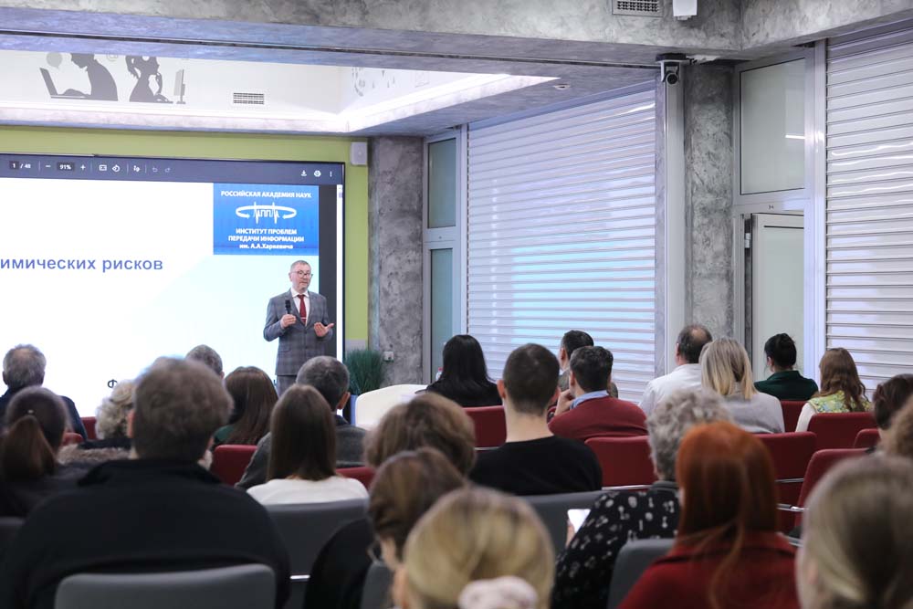 Перед началом выступления Максим Фёдоров сделал краткий экскурс в историю создания и деятельность Института проблем передачи информации им. А.А. Харкевича РАН, где сегодня разрабатываются различные направления – от компьютерной цветопередачи до машинного обучения и коммуникации.