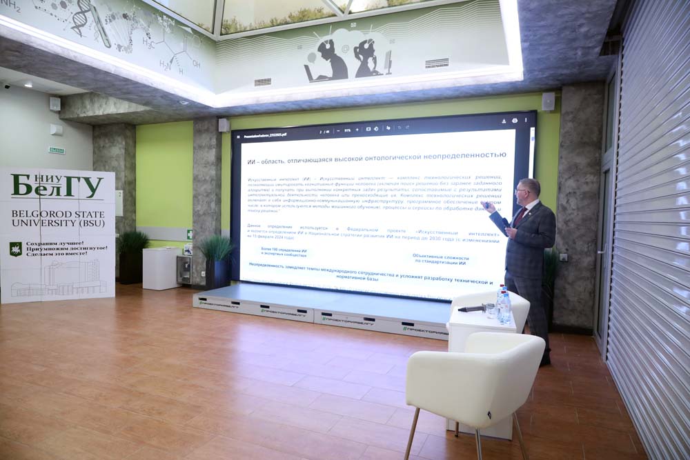 В Проектории НИУ «БелГУ» Максим Валериевич провёл семинар на тему «ИИ и анализ химических рисков». В обсуждении приняли участие ведущие учёные и молодые исследователи института информационных и цифровых технологий, института фармации, химии и биологии и НИИ фармакологии живых систем Белгородского госуниверситета.