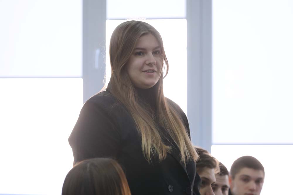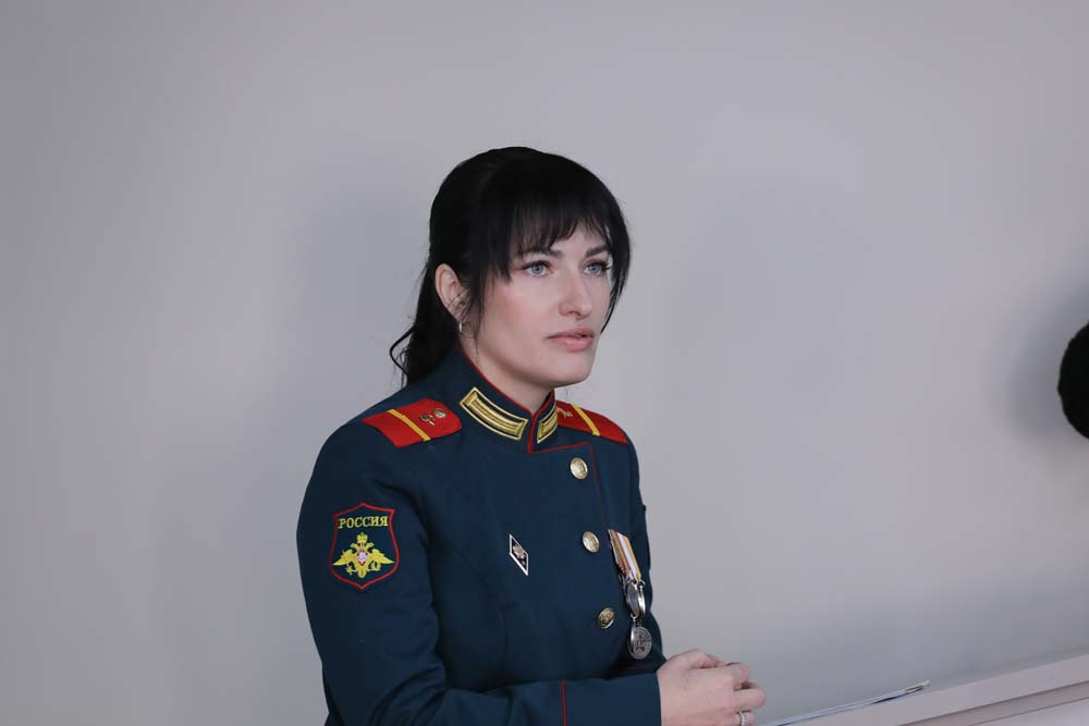 Обучающиеся задавали гостье вопросы о том, как поступить на военную службу, о людях, которыми она вдохновляется, различных аспектах её профессиональной деятельности.