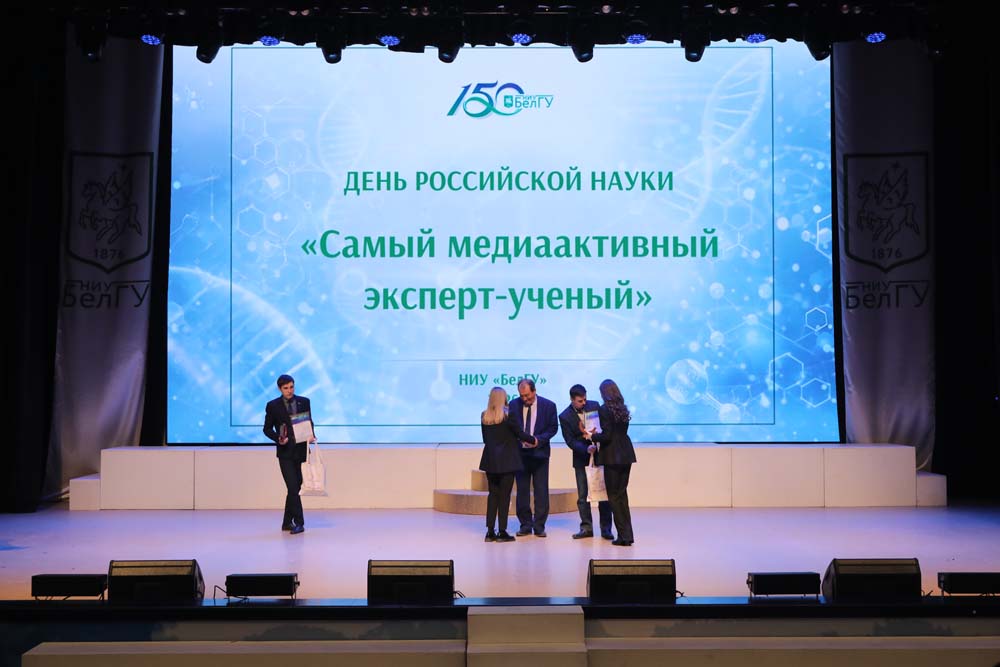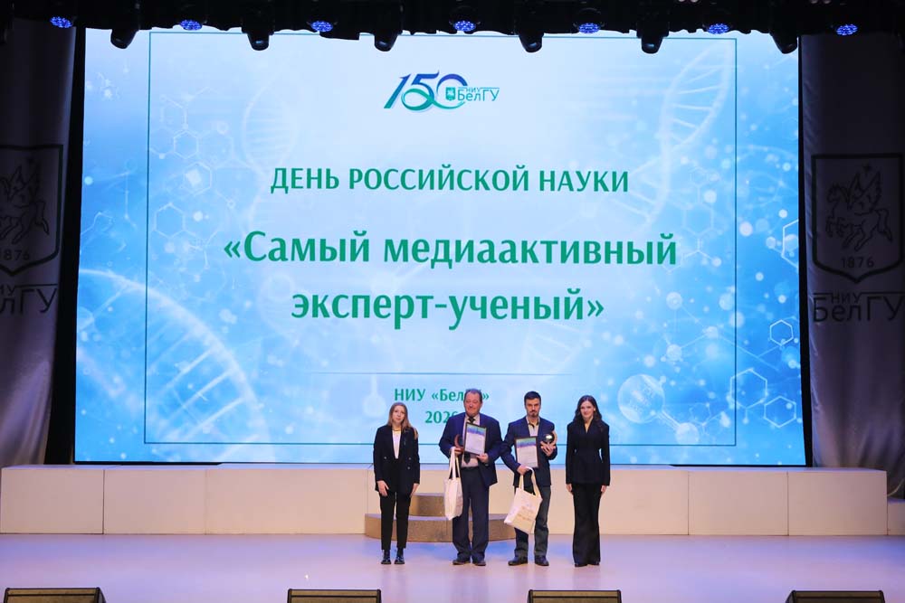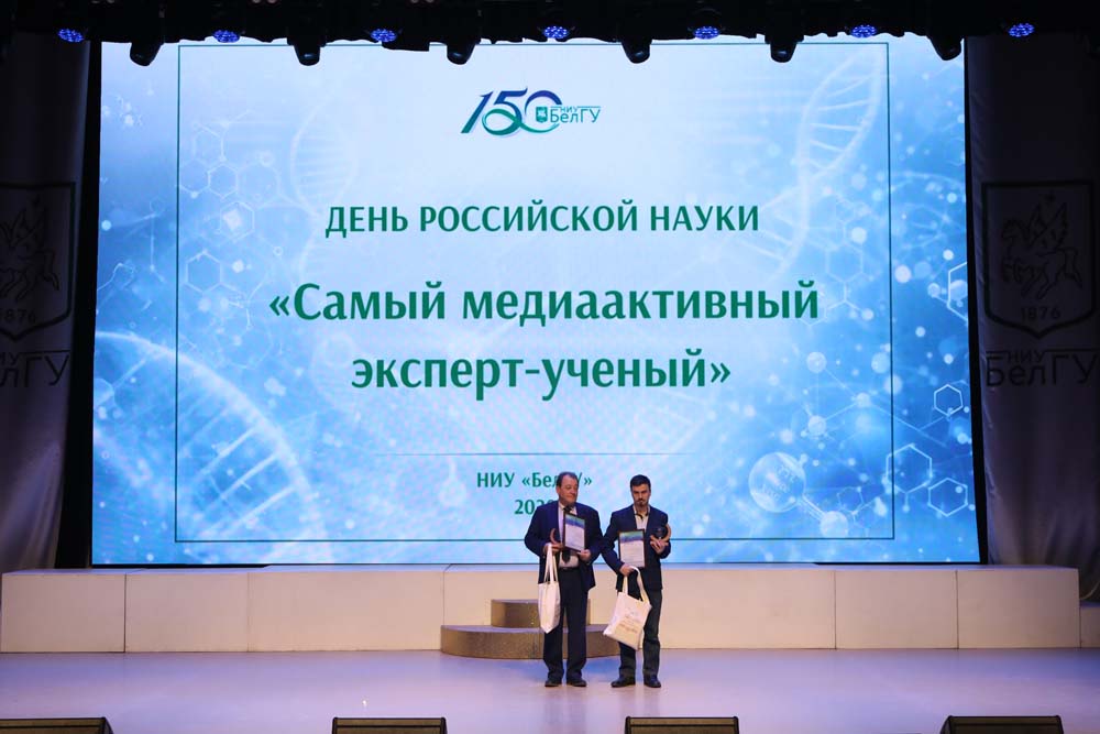 Также на церемонии объявили имена победителей номинации «Самый медиаактивный популяризатор науки в НИУ «БелГУ». Диплом III степени получил профессор Павел Голеусов, который активно популяризирует достижения вуза в области геоэкологии и мониторинга окружающей среды. Диплом II степени вручили кандидату исторических наук Сергею Прокопенко, признанному Всероссийским обществом «Знание» лучшим просветителем Белгородской области и известному активным участием в дискуссиях о фальсификации истории. Диплома I степени удостоен кандидат биологических наук Алексей Дейкин, который в прошедшем году прокомментировал и выступил экспертом в федеральных и региональных СМИ по 25 инфоповодам.