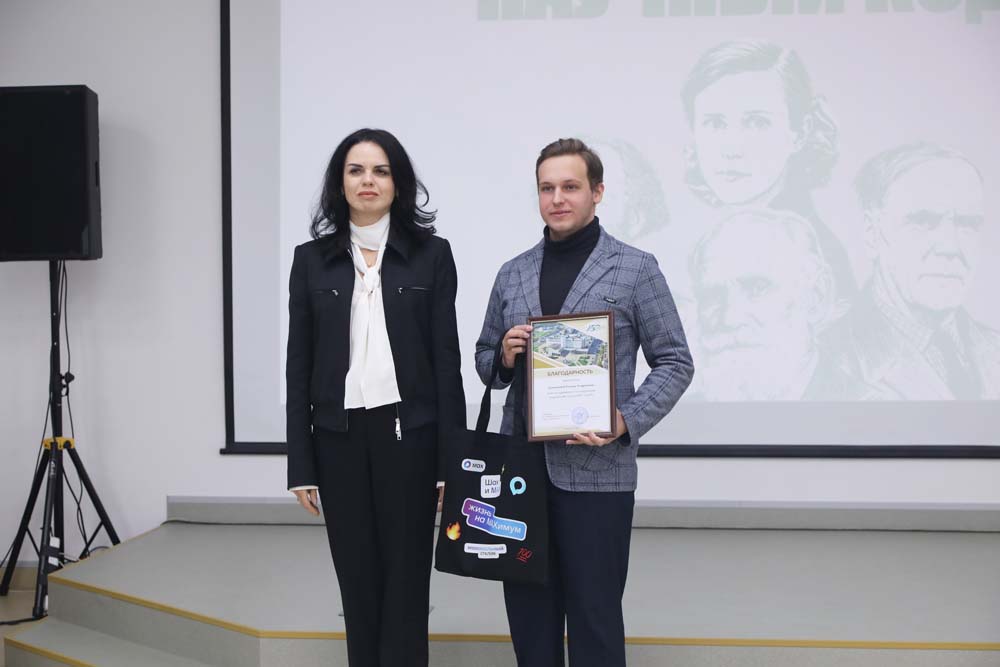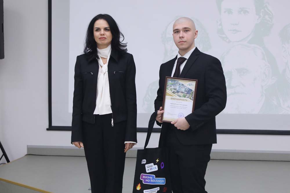 В завершение мероприятия к присутствующим обратилась Елена Скрипников, которая поблагодарила участников за честную игру и пожелала не останавливаться на достигнутом. Также Елена Владимировна вручила подарки победителям и благодарности студентам за достижения в учёбе и исследовательской деятельности.