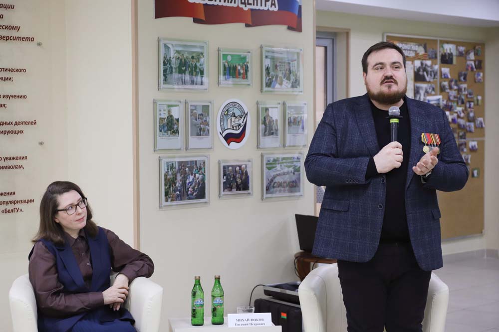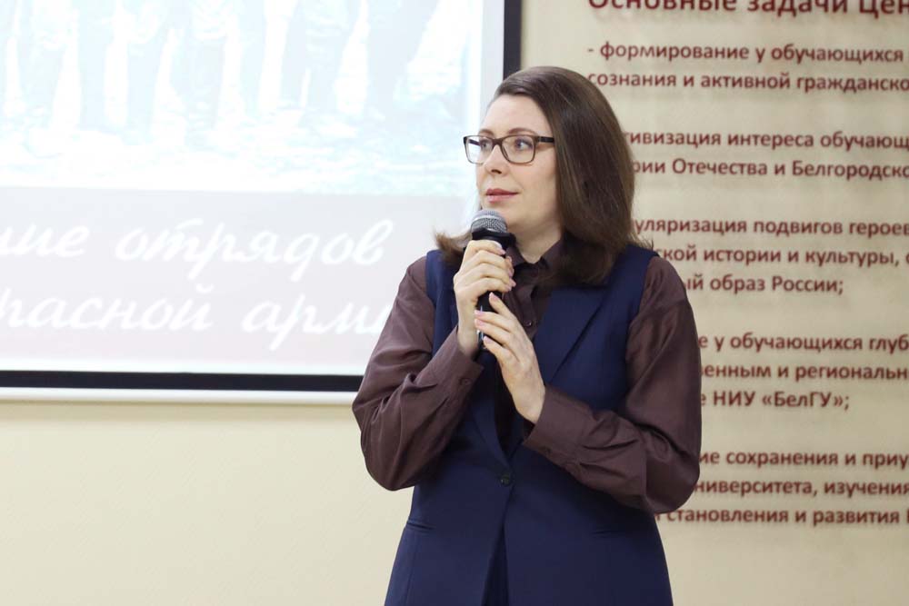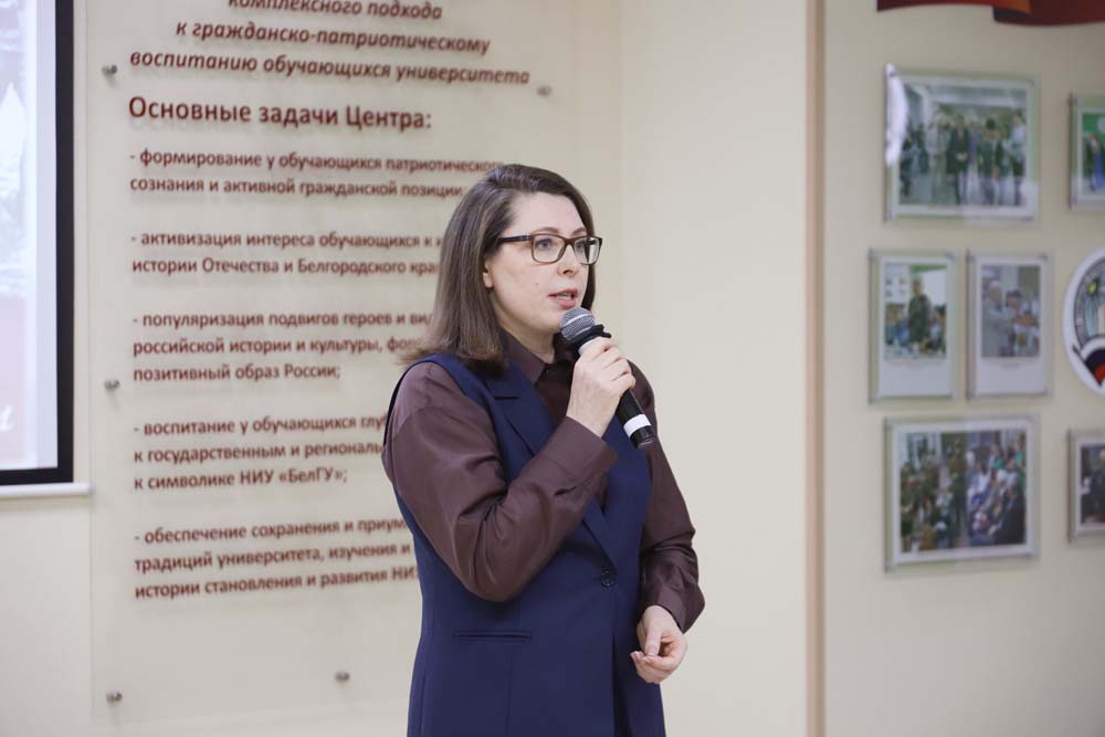 Встреча «Веками Россию сыны защищали» прошла в Центре гражданско-патриотического воспитания обучающихся НИУ «БелГУ». Мероприятие организовано департаментом молодёжной политики и воспитательной деятельности и Научной библиотекой имени Н.Н. Страхова совместно с Центром гражданско-патриотического воспитания, Профсоюзным комитетом НИУ «БелГУ» и Координационным центром ВПИТИПЭ.
