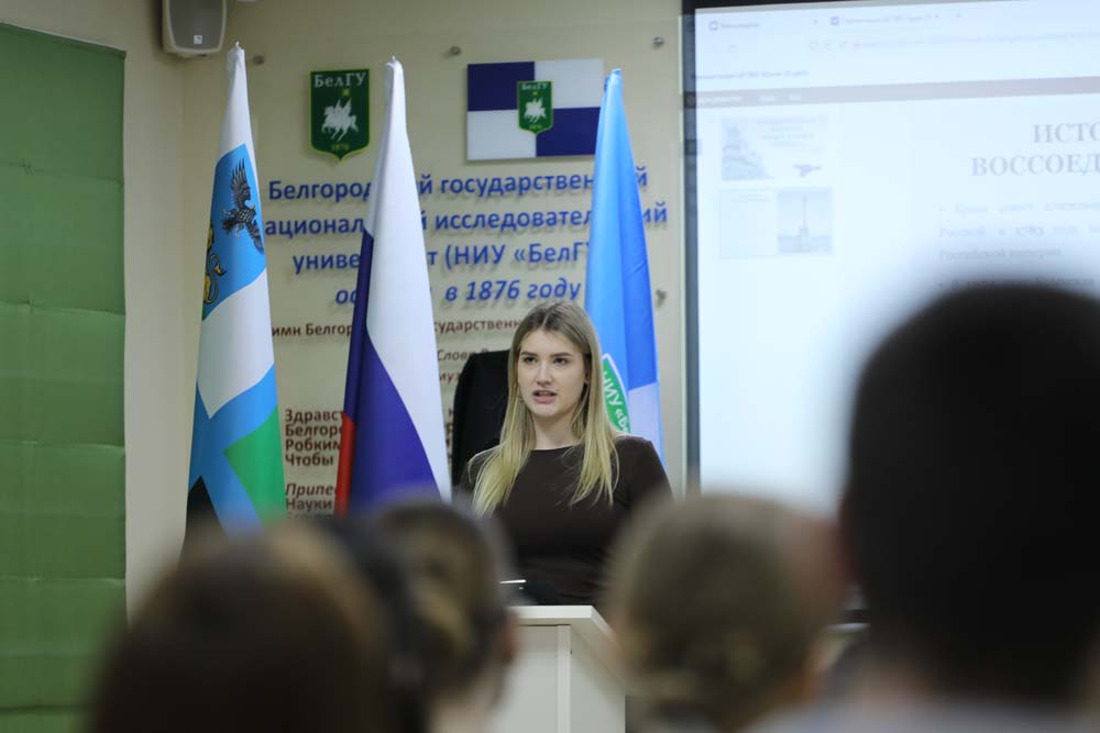 В Центре гражданско-патриотического воспитания обучающихся НИУ «БелГУ» прошла тематическая встреча «Крым в моём сердце». Организаторами мероприятия выступили Департамент молодёжной политики и воспитательной деятельности, историко-филологический факультет педагогического института и Координационный центр ВПИТИПЭ. В роли модератора выступила студентка института фармации, химии и биологии Елизавета Рыбочкина. Встречу посетили студенты разный институтов вуза.