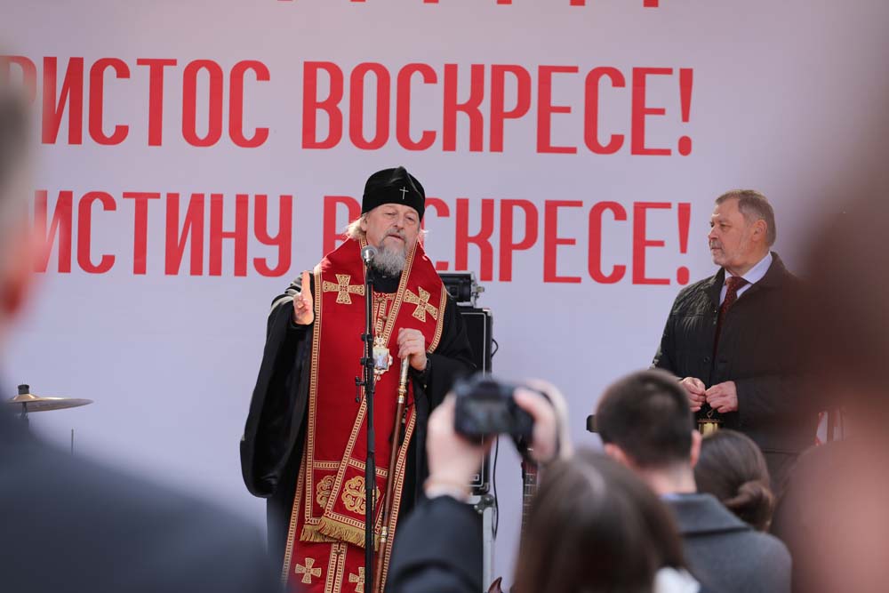 Мэр города Белгорода Валентин Демидов отметил, что очень важно, чтобы радость Воскресения Христова разделяла с жителями молодёжь, студенты, которые являются главным будущим региона и всей страны.