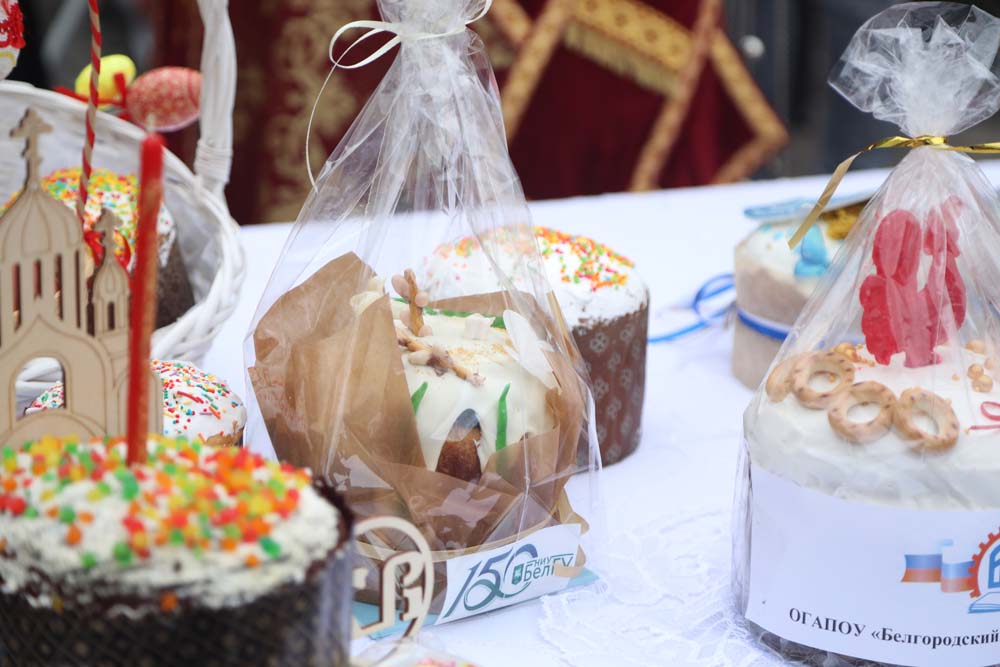 Тематическая выставка студенческих работ задавала особую атмосферу праздника. В «шатре инициатив» можно было увидеть иконы, картины с религиозными сюжетами, расписные яйца, куличи и творческие работы студентов. Отметим, что в этом году, благодаря вкладу кафедры технологии продуктов питания института фармации, химии и биологии НИУ «БелГУ» куличи были приготовлены с использованием муки из шрота винограда. Главные праздничные угощения с символикой 150-летия НИУ «БелГУ» были подарены высокопоставленным гостям праздника, в том числе Главе Белгородской митрополии.